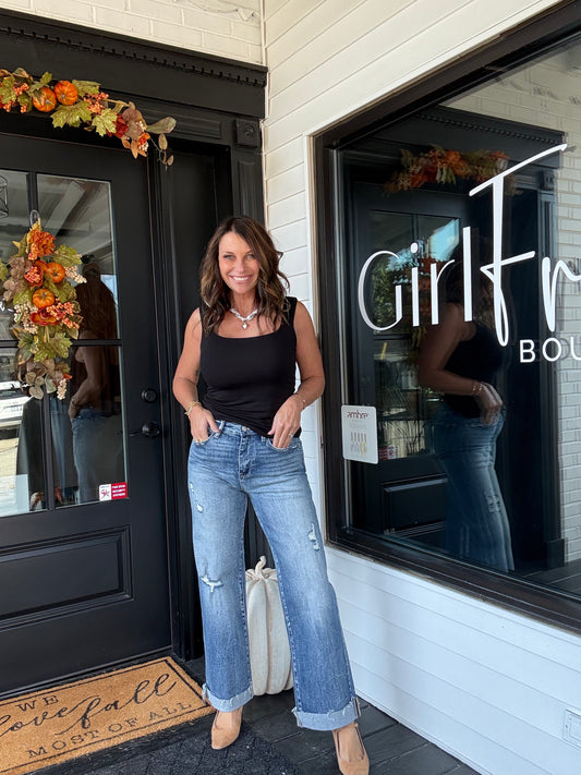 Petra High Rise Stretch Slim Wide Leg w/ Cuffed Hem