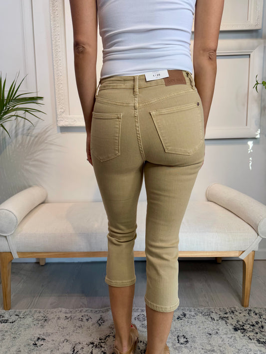 Judy Blue Mid Rise Garmed Dyed Capri