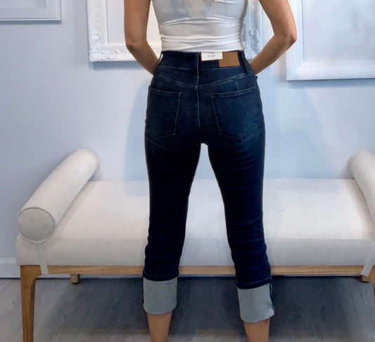 Judy Blue Super Dark Wash Capri with Side Slit