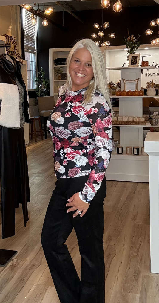 Mock Neck Shirred Waist Top