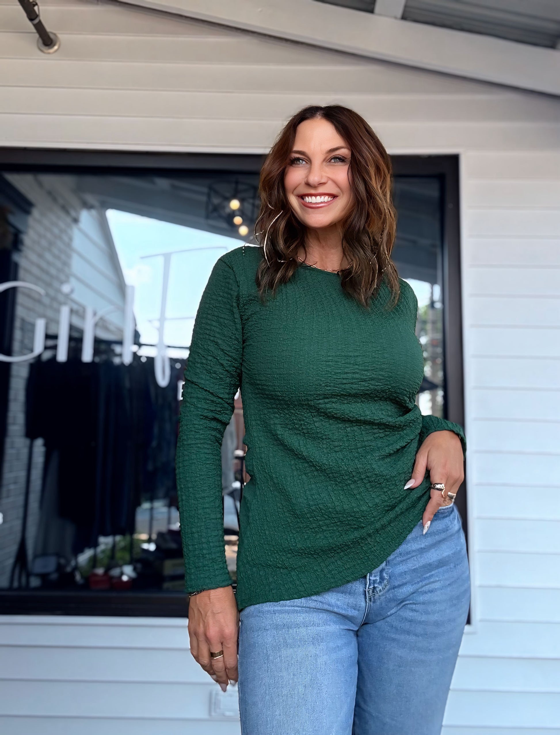 Round Neck Long Sleeve Asymmetric Hem Top
