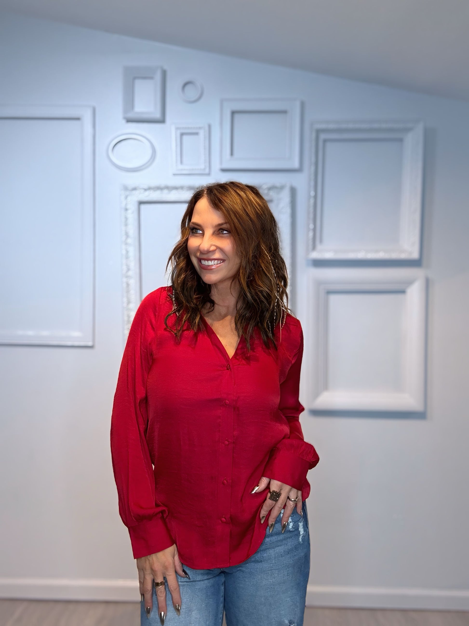 Classic V-Neck Button Down Blouse