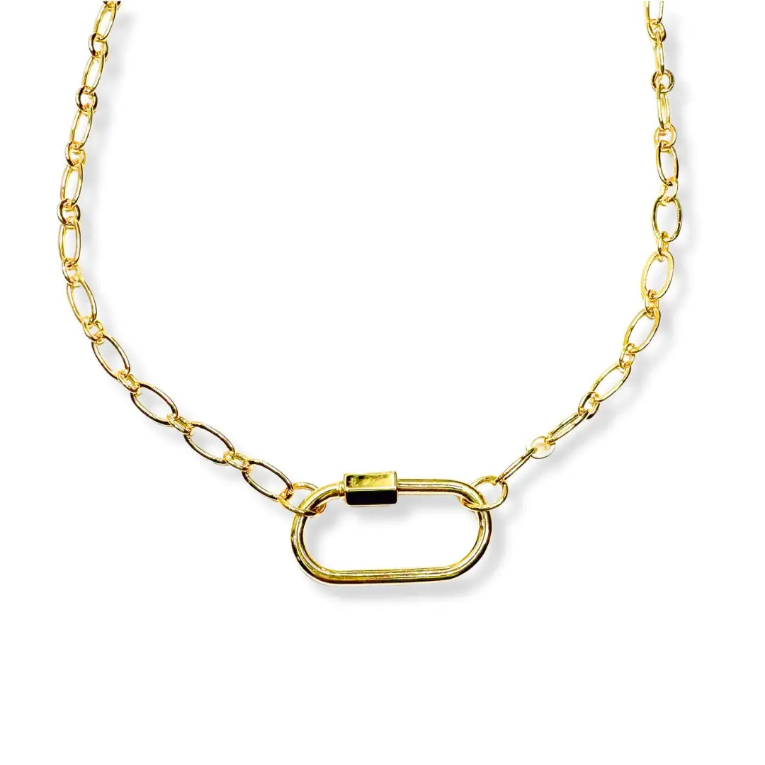 This Gold Carabiner Clasp Paperclip Charm Necklace pairs perfect with any of our charms. You can add any of our Charms to the Carabiner clasp.
