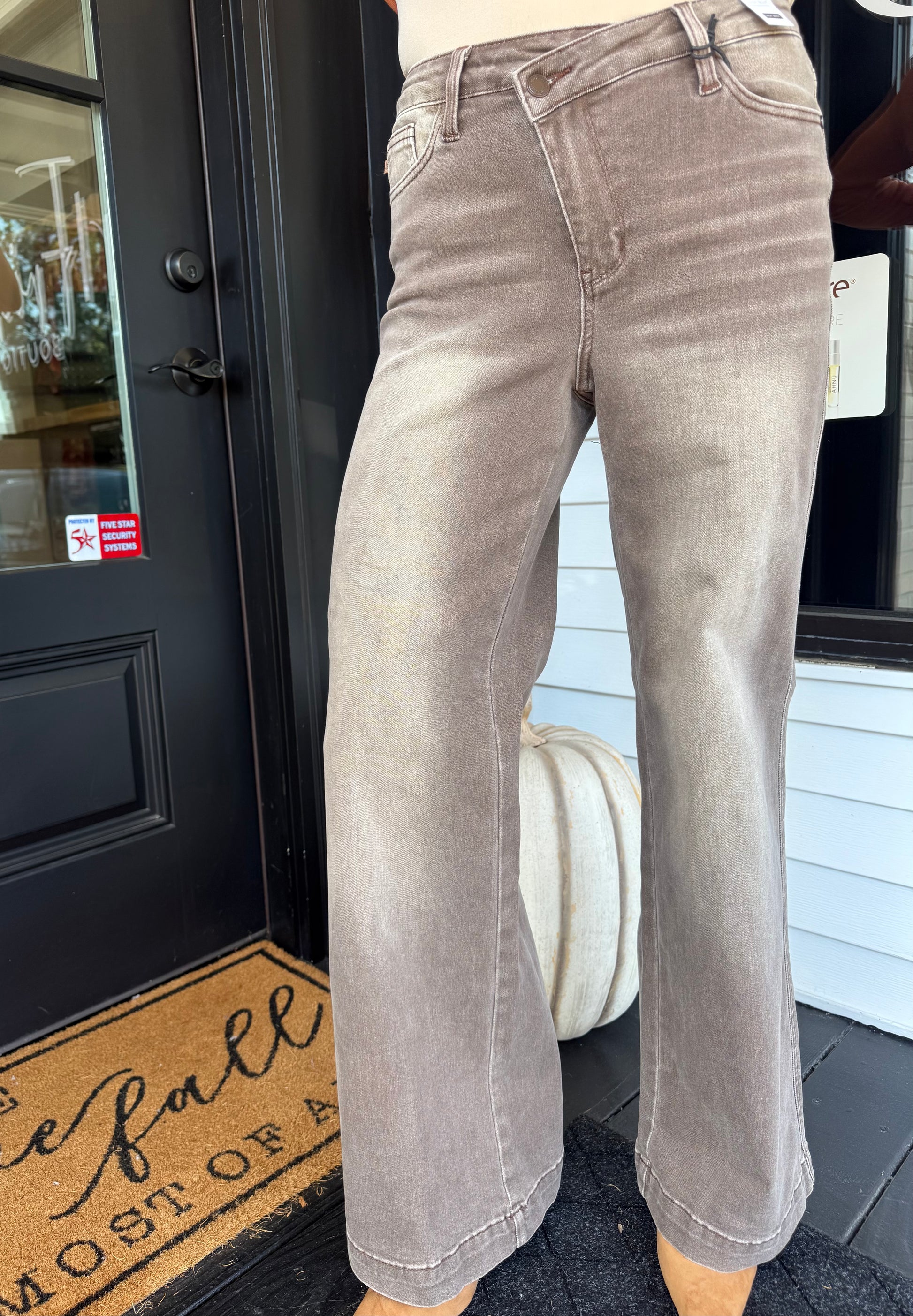Judy Blue HW Retro Wide Yarn Dyed Criss-Cross
