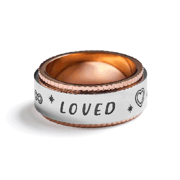 Introducing the Mantra Spin Ring, a unique spinner ring that helps you relax and focus. Choose from "Loved," "Lucky," or "Grateful," each engraved with meaningful symbols and a stylish ribbed edge for added flair. Perfect for stress relief or as a thoughtful gift, these rings are designed to remind you of what's important. Simple yet elegant, they fit any style and make a powerful statement in just a spin.