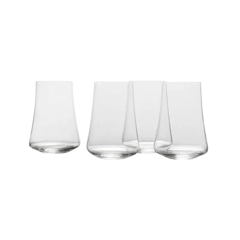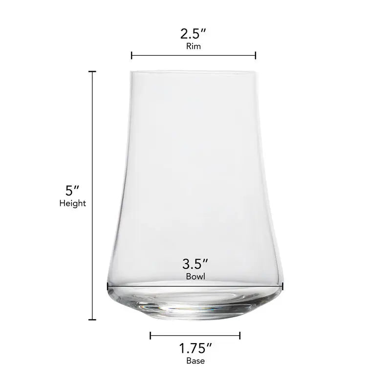 MODERN ALLURE: elegant and sophisticated Aline stemware captivates with unexpected curves that flare outward to wide bases TALL AND TRENDY: highball glasses bring modern appeal to your dining table or home bar BEAUTIFULLY CRAFTED: lead-free crystal glasses are machine-made. Each glass measures 5 inches tall with a 3-1/2 inch diameter and a 17-fluid ounce capacity EASY CARE: dishwasher safe for quick, thorough cleaning