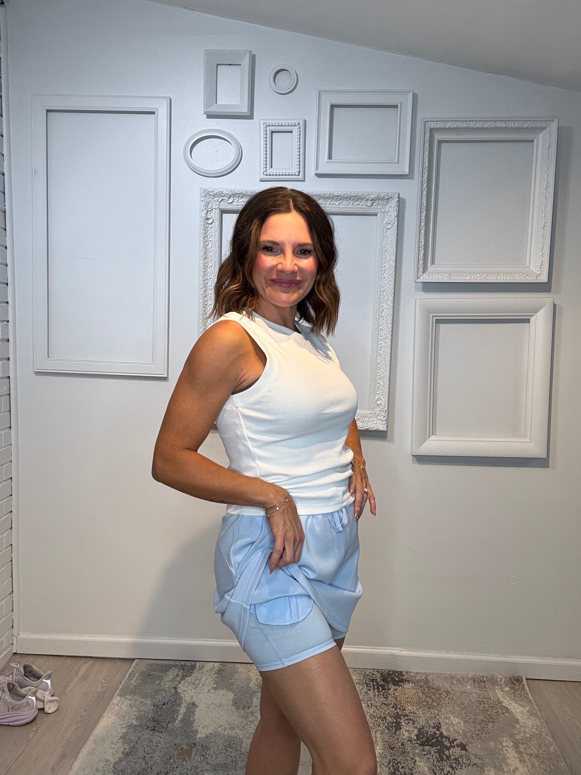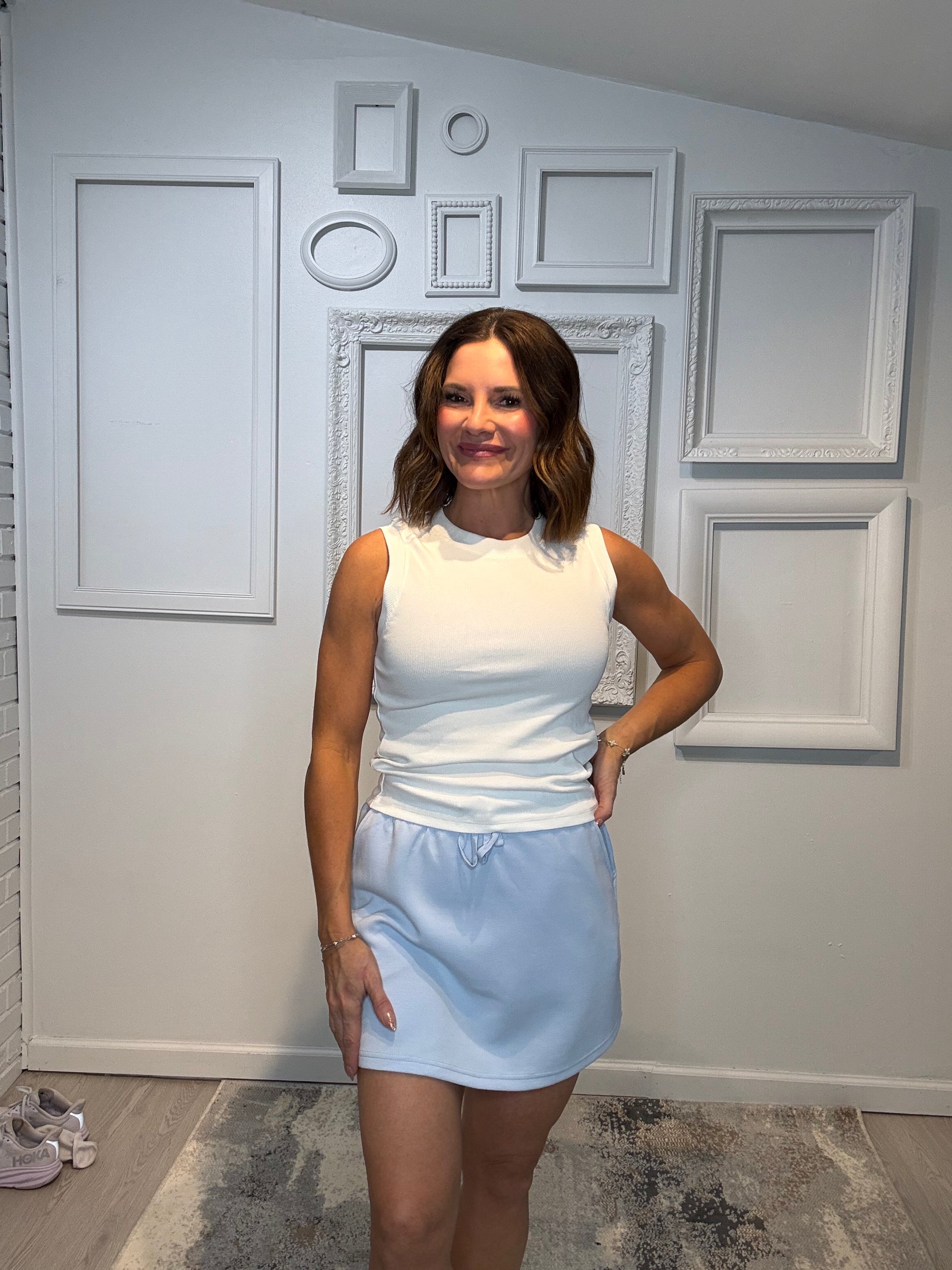 A mini skirt crafted from luxurious, silky-smooth fabric with a built-in pant for comfort and coverage. Blending elegance with an active look, it's perfect for both style and movement. Features: - Modal Poly Span Scuba fabric - Silky smooth and lightweight - 4-way stretch - Standard fit - High waist / High rise - Skirt with built in pant - 2 in 1 - Adjustable elastic waistband - Side pockets