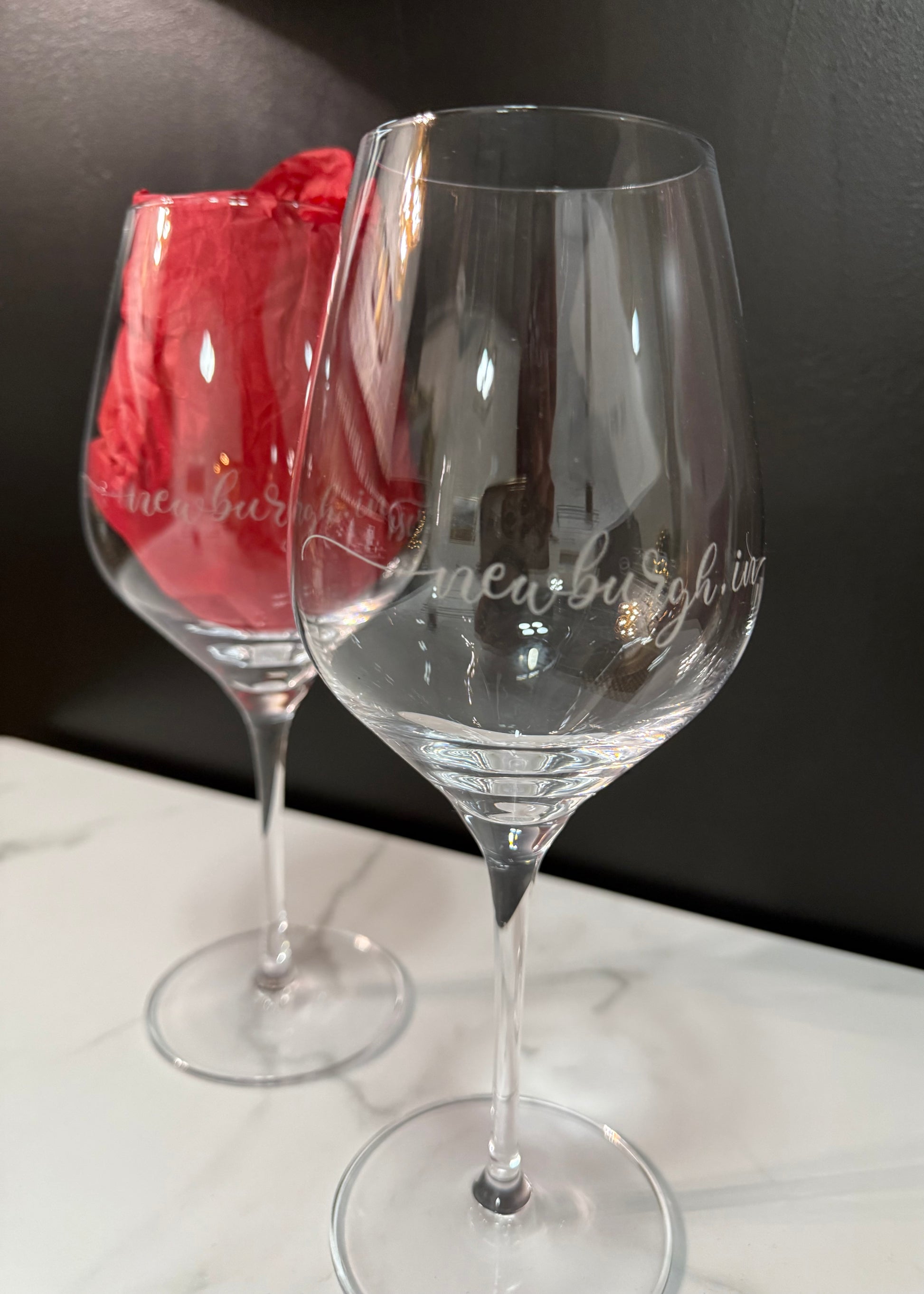Engraved Newburgh wine glass.