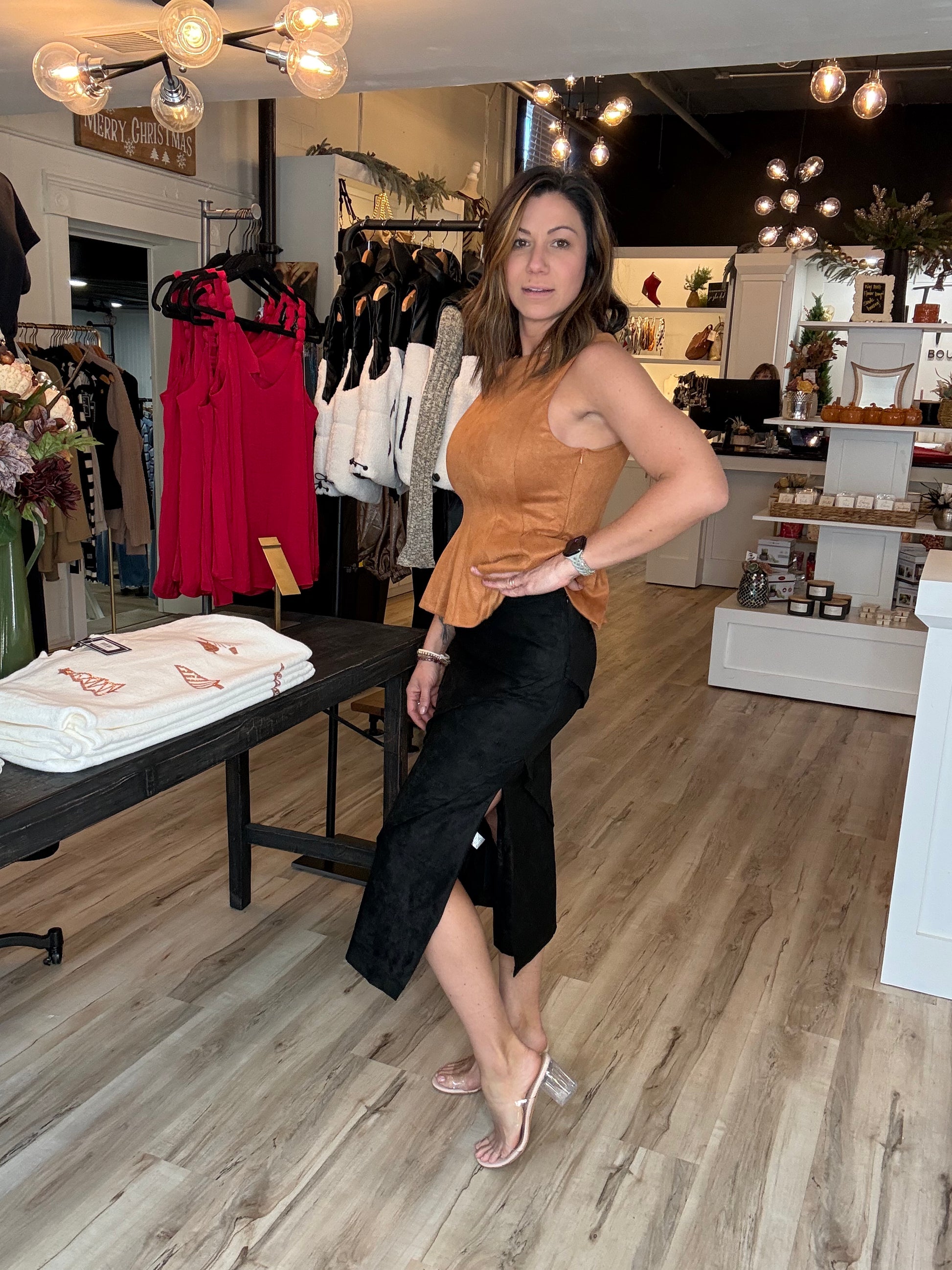 Suede Wrap Detail Midi Skirt